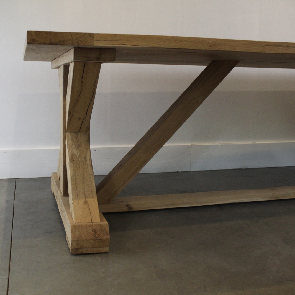 Der Klostertisch aus alter Eiche ist ein wunderschönes Beispiel traditioneller Handwerkskunst mit einer reichen Geschichte. Das für diese einzigartigen Tische verwendete Holz stammt aus alten Getreidespeichern, Weinpressen und Lagerhäusern. Die massiven Eichenholzstücke in verschiedenen Längen, Breiten und Stärken stammen aus osteuropäischen Ländern wie Serbien, Ungarn, der Ukraine und Slowenien.