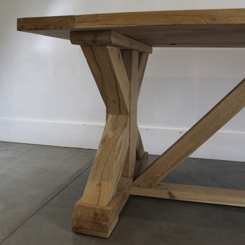 Ein Klostertisch aus wiederverwerteter Eiche ist nicht nur ein funktionales Möbelstück, sondern bietet auch einen historischen und ästhetischen Wert, der von keiner modernen Alternative erreicht wird. Er ist eine Hommage an die Kunst der Wiederverwendung und eine Hommage an die Handwerkskunst.
