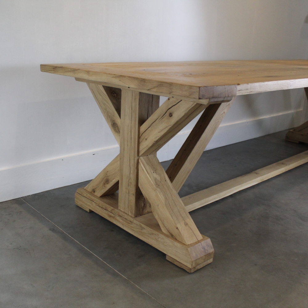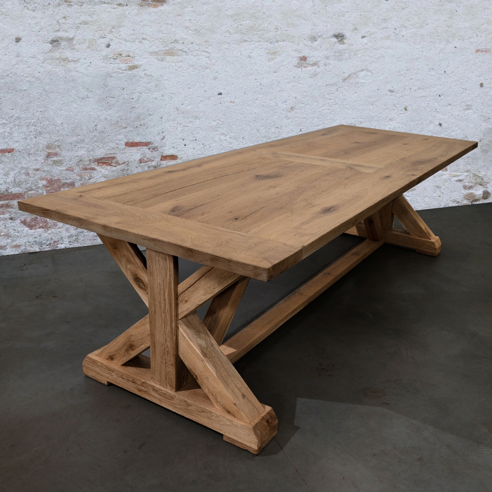 Jedes Stück Eiche hat seine eigene, einzigartige Struktur und Erscheinung. Die Bretter unterscheiden sich nicht nur in der Größe, sondern auch in der Struktur und Farbe. Daher gleicht kein Tisch dem anderen. Diese Variation stellt sicher, dass jeder Klostertisch ein einzigartiges Möbelstück ist, reich an Geschichte und Charakter.