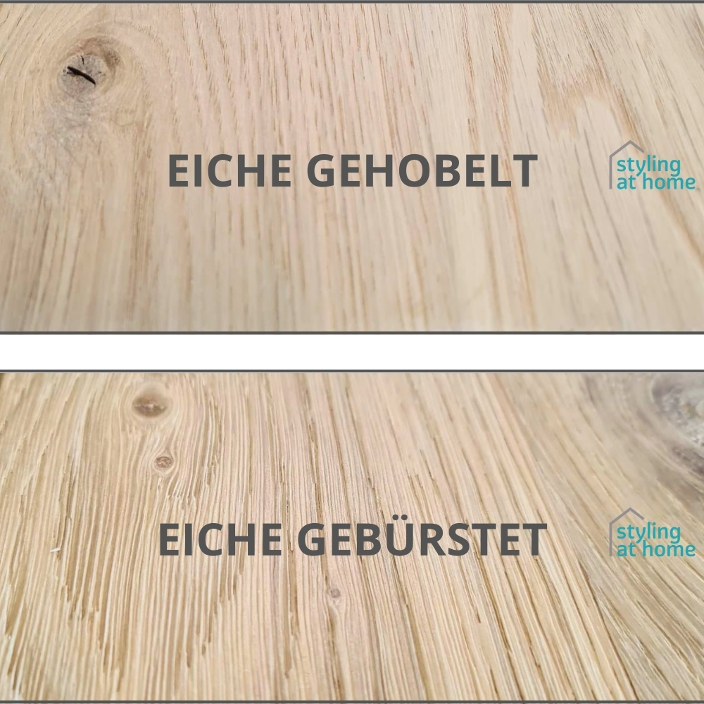 Bei Auswahl wird die Eiche nur außen gebürstet. Gebürstete Eiche bewahrt das authentische Aussehen.